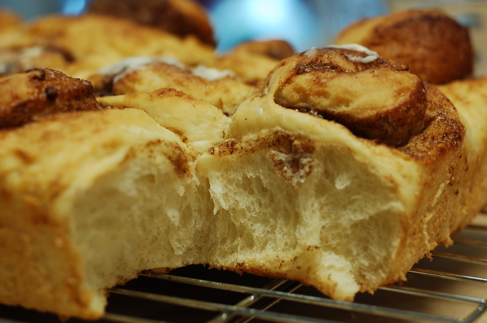 要するに上にのってるスティッキーなトッピング(焼く時に型の下に入れて焼いて、出来たらひっくり返します)を省いて、パンの生地だけ焼いたのの上に、シナモンロールのトッピングを塗りました。